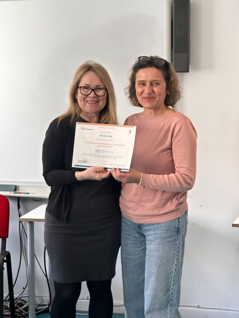 Nastavnica Lidija Mačukat sudjelovala je na seminaru „A Satisfying School Experience: Strategies and Skills for Teachers“ u organizaciji Europass Teacher Academy. Tijekom edukacije, kroz aktivno praćenje i sudjelovanje u svim aktivnostima, stekla je nova znanja o stvaranju sigurnog i poticajnog školskog okruženja te o unapređenju komunikacije s učenicima. Sudjelovanje u ovoj aktivnosti pozitivno će utjecati na razvoj nastavničkih kompetencija, osobito kroz primjenu novih metoda i aktivnosti u nastavi koje će olakšati komunikaciju s učenicima i povećati njihovu motivaciju za rad.