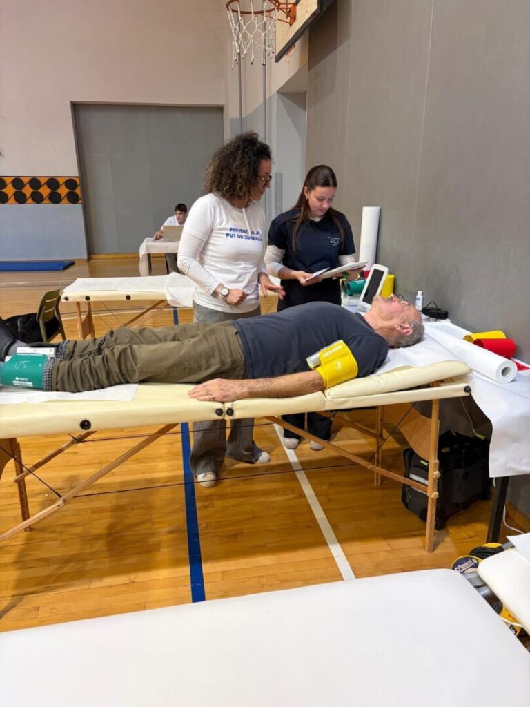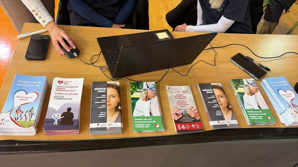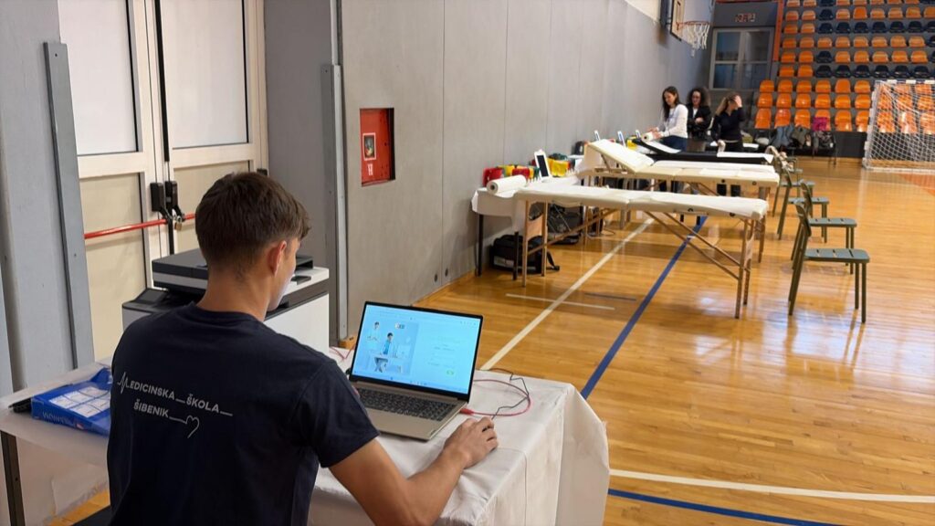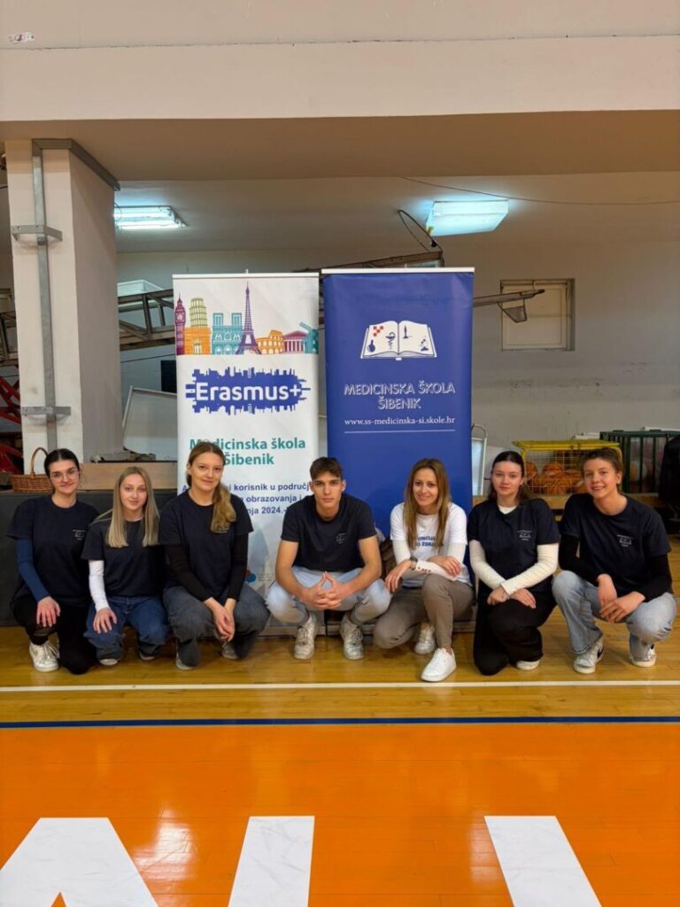 Učenici 5.A razreda, smjera medicinska sestra/medicinski tehničar opće njege, sudjelovali su u javnozdravstvenoj akciji „Korak ispred bolesti“, koja je održana 25. i 26. ožujka 2026. godine u Sportskoj dvorani Baldekin. Akciju su organizirali Hrvatski zavod za javno zdravstvo i Dom zdravlja Šibensko-kninske županije, u suradnji s tvrtkom MESI d.o.o.. Cilj ove javnozdravstvene aktivnosti bio je podizanje svijesti građana o važnosti prevencije kardiovaskularnih bolesti, s posebnim naglaskom na perifernu arterijsku bolest (PAB), te poticanje građana na redovite preventivne zdravstvene preglede. Tijekom provedbe akcije građanima su se provodila različita preventivna mjerenja i zdravstvene procjene, uključujući određivanje vrijednosti kolesterola i HbA1c, mjerenje pedobrahijalnog indeksa (ABI) te krvnoga tlaka. Na taj način sudionicima je omogućeno dobivanje osnovnih informacija o njihovom zdravstvenom stanju, uz savjete zdravstvenih djelatnika o važnosti zdravih životnih navika i pravovremene prevencije bolesti. Sudjelovanjem u ovoj javnozdravstvenoj akciji učenici su imali priliku aktivno sudjelovati u radu zdravstvenog tima, promatrati i upoznati postupke preventivnih pregleda te dodatno proširiti svoja stručna znanja i vještine u stvarnom zdravstvenom okruženju. Takva iskustva iznimno su važna za razvoj profesionalnih kompetencija budućih medicinskih sestara i tehničara, osobito u području zdravstvene njege, komunikacije s pacijentima i promicanja zdravlja u zajednici. Sudjelovanje u ovakvim aktivnostima doprinosi jačanju suradnje između zdravstvenih ustanova i obrazovnog sustava te učenicima omogućuje stjecanje vrijednog iskustva za budući rad, pri čemu su primijenili znanja i vještine stečene u sklopu Erasmus+ projekta.
