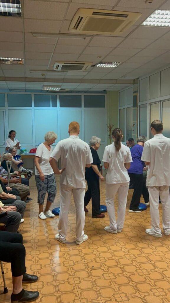 U skladu s temom ovogodišnjeg Međunarodnog dana fizioterapeuta, Aktivnosti za zdravo starenje, te ususret obilježavanju Svjetskog dana starijih osoba, učenici četvrtog razreda fizioterapeutskih tehničara pod vodstvom stručnih nastavnika i u suradnji s fizioterapeutima i radnim terapeutom Doma za starije Cvjetni dom organizirali su aktivnosti za korisnike doma. Učenici su proveli niz aktivnosti s ciljem procjene rizika od pada kod zainteresiranih korisnika, te razvijanja koordinacije i spretnosti. Sve su aktivnosti bile zabavnog karaktera, te kao i svake godine družili smo se u dobrom raspoloženju, veselju i uz pjesmu.